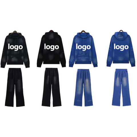 Cehennem erkekler özel büyük beden kazak Hoodie kış uzun kazak asit yıkanmış Vintage etkisi 100% örme pamuk ağır özelliği